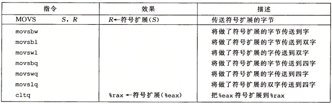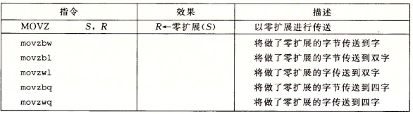 注意到并没有一条明确的指令把4字节源值扩展到8字节目的,因为这个可以依靠movl