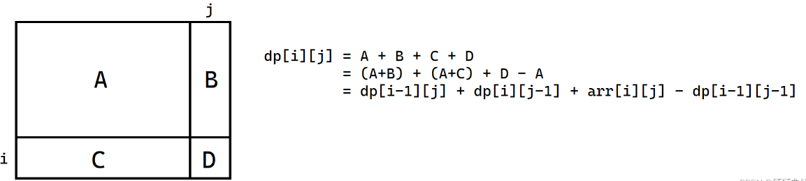 dp[i][j] = dp[i-1][j] + dp[i][j-1] + arr[i][j] - dp[i-1][j-1]; //注意这一步.