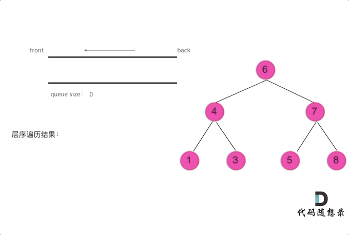 而广度优先遍历的实现一般使用队列来实现,这也是队列先进先出的特点所决定的,因为需要先进先出的结构,才能一层一层的来遍历二叉树。