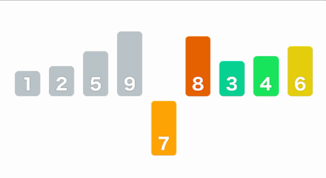 - 把它与左边第一个元素比较,如果左边第一个元素比它大,则继续与左边第二个元素比较下去,直到遇到不比它大的元素,然后插到这个元素的右边。