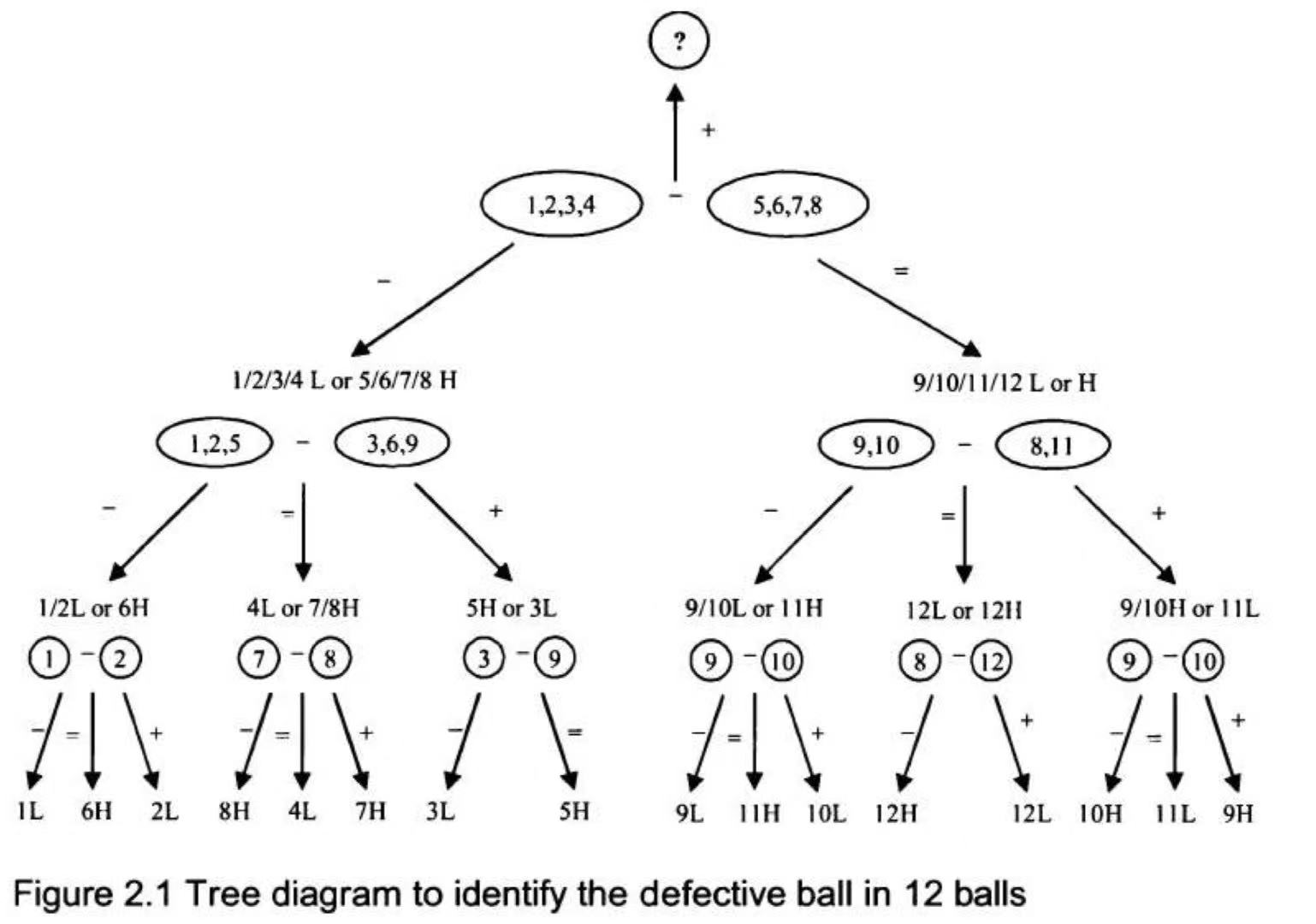 这里面有规律,如果球的缺陷类别(重或轻)已知,则可以用M次测量区分3^M个球中的一个次品球;如果缺陷类别未知,则可以区分(3^M-3)/2个球中的一个次品球。