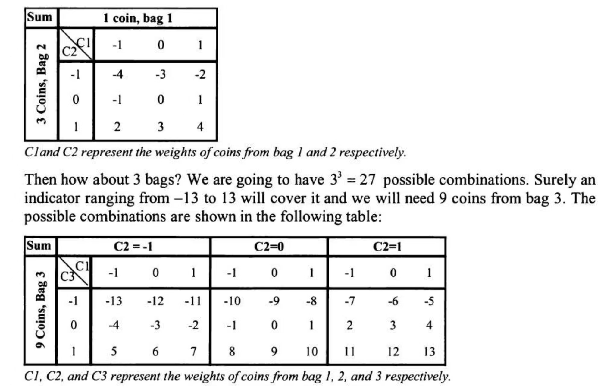 - 三个袋子的话,有27个可能,第三个袋子就需要取9个。